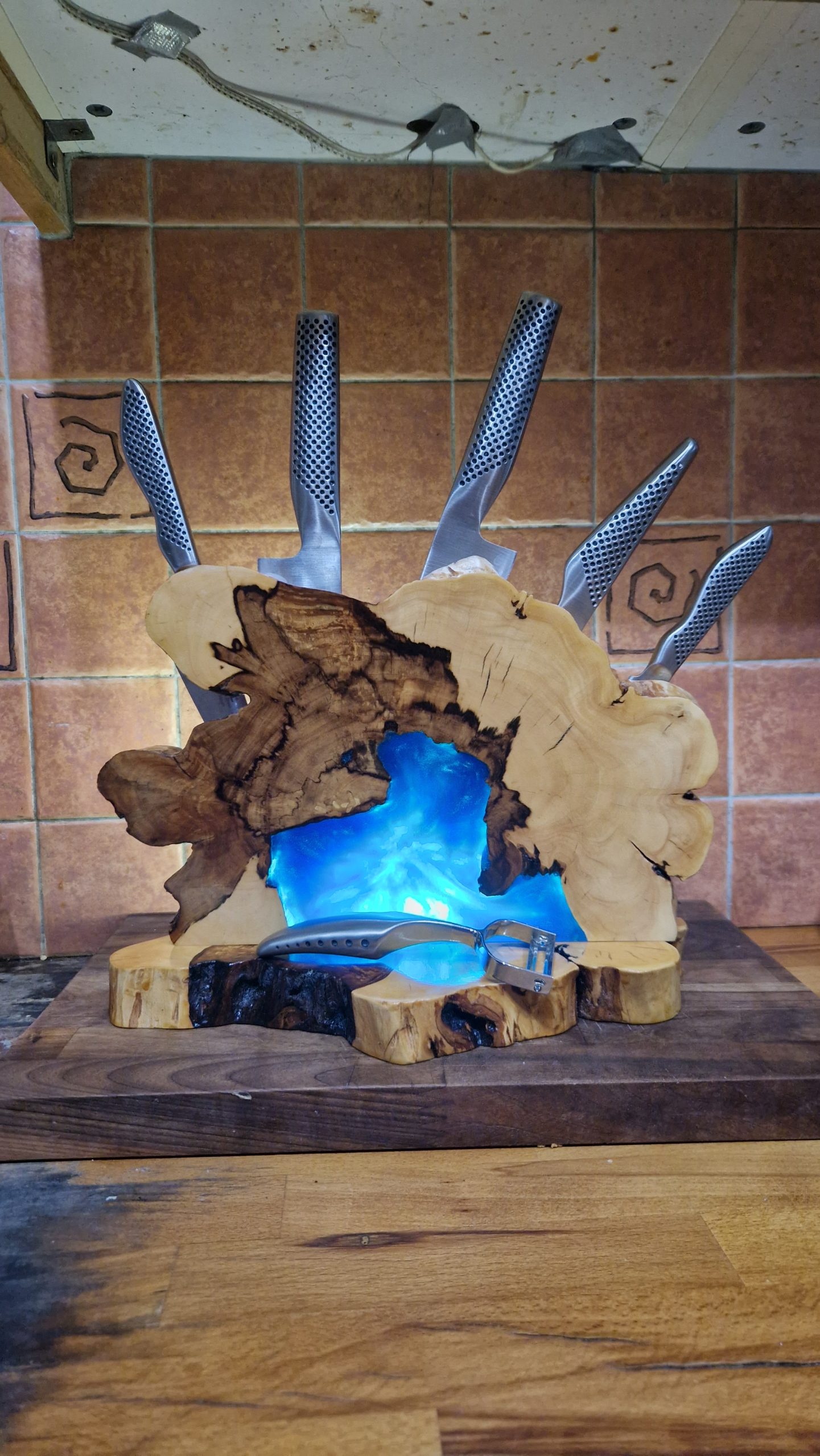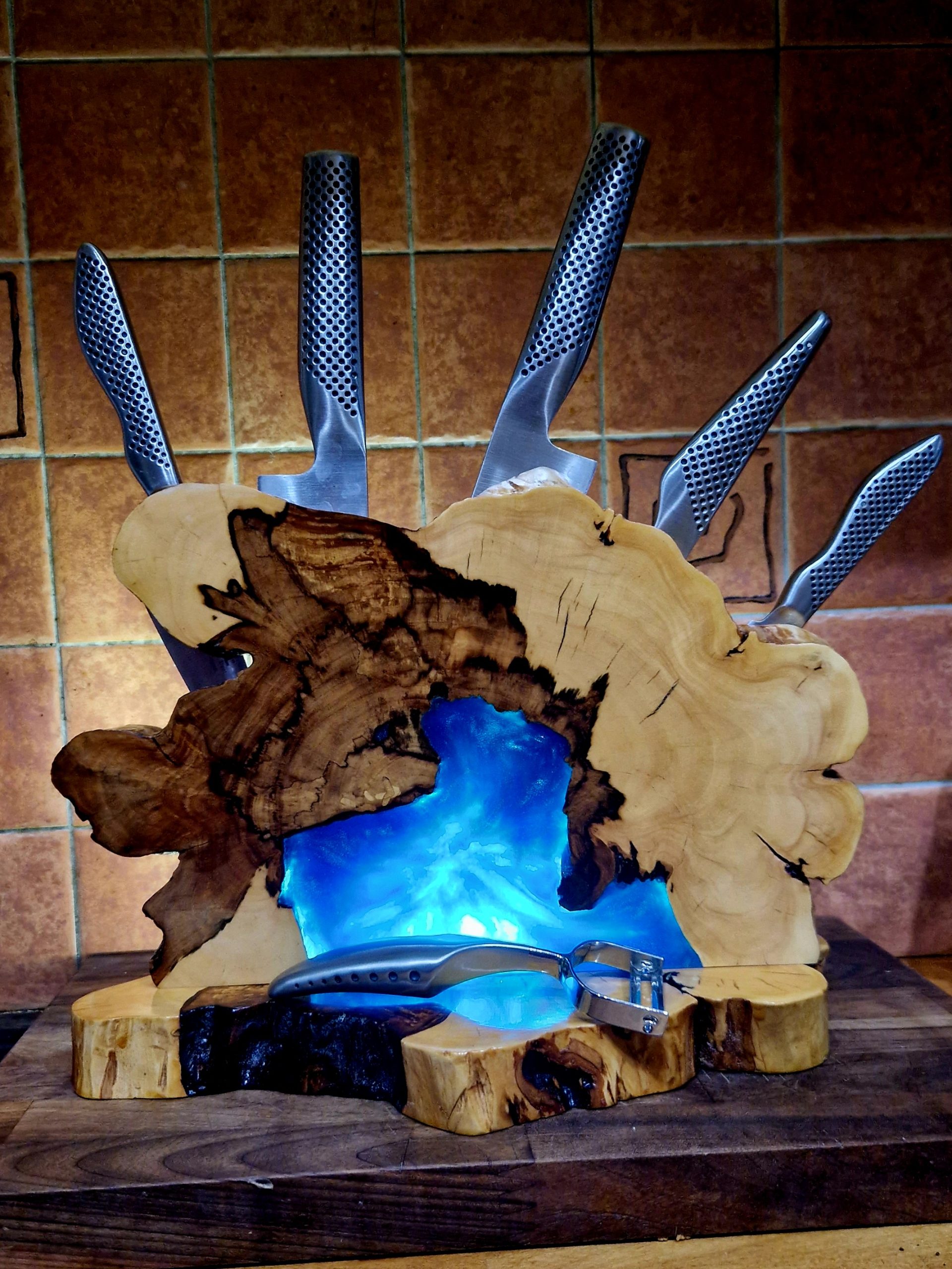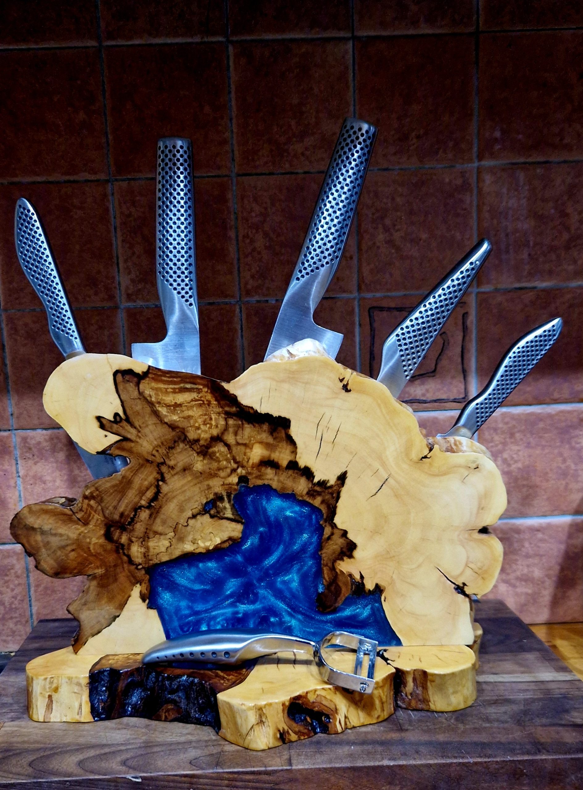 MAPLE WOOD AND EPOXY MAGNETIC KNIVES HOLDER.