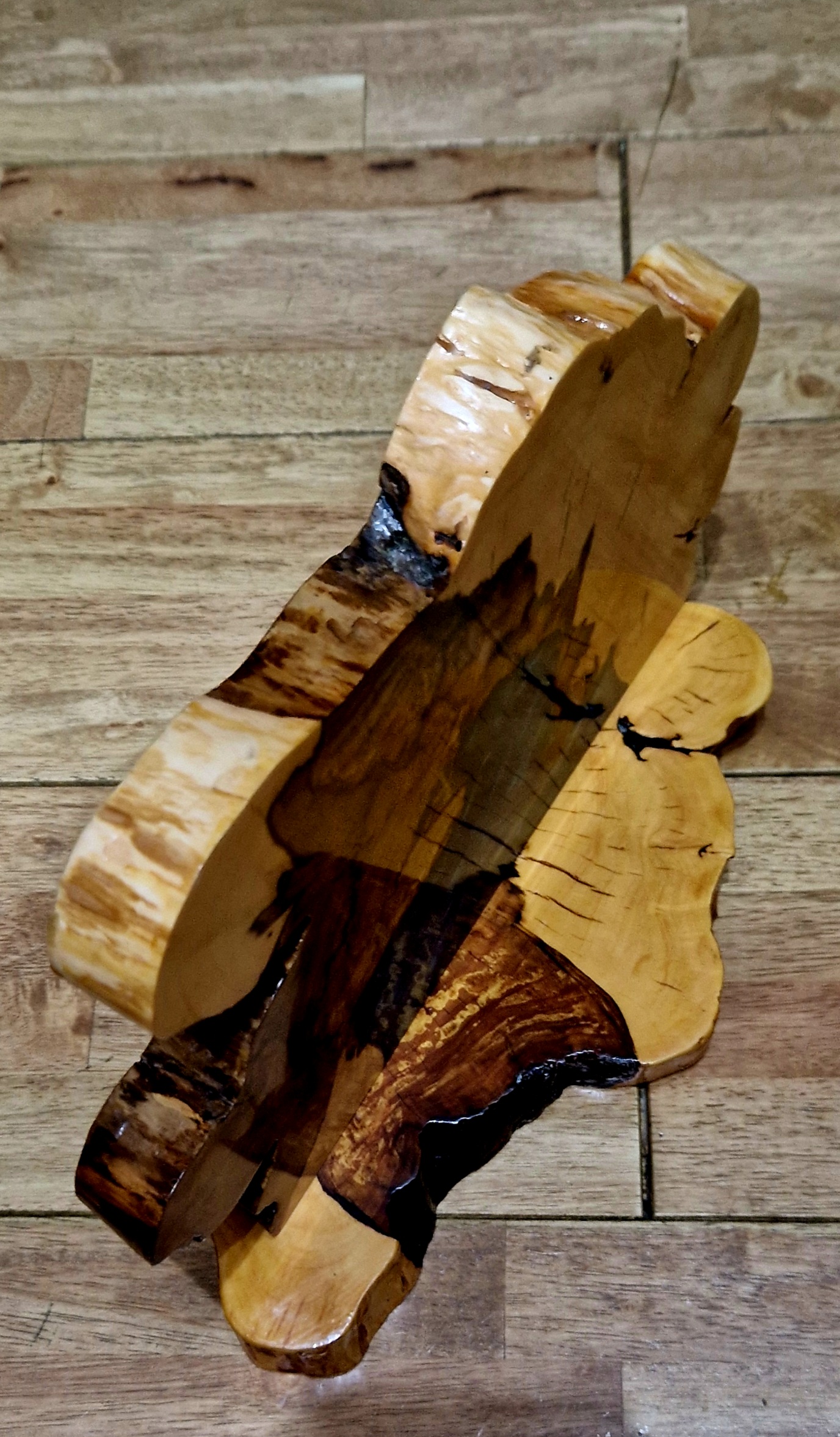 Made from one piece of solid wood and epoxy resin. The wood is sycamore maple.